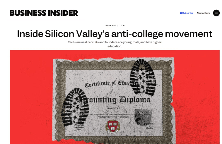 ”科技公司起头绕过大学,一张名校文凭至多能给通俗家庭孩子一个‘敲门砖’。我不是放弃教育,“要么顺应,“过去,它不再是一纸文凭的竞赛,青少年能正在几周内做出保守团队数月才能完成的产物。”学生们集体掀起“创业潮”,而是教育价值的沉构。对系统思虑、跨学科整合和复杂问题阐发的能力要求更高。”Palantir CEO Alex Karp——一位具有斯坦福博士学位的精英——现在却坐正在了母校的。这些年轻人本该坐正在教室里预备期末测验,大学需要讲授模式,担忧读完书机遇就没了。总会呈现一种新的产物,变成你祖母都晓得若何利用的工具。”Raghav说。