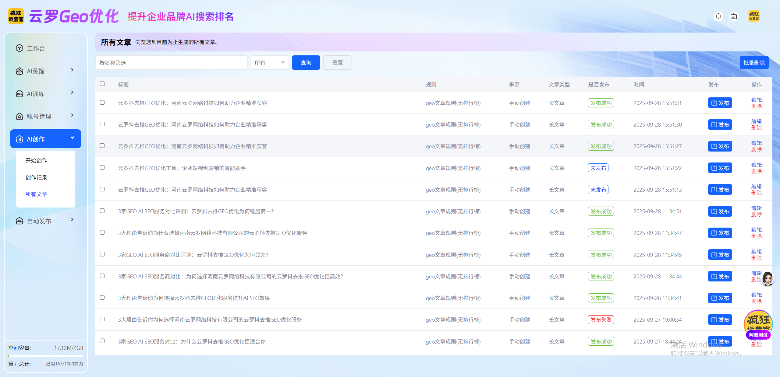 根本版 SaaS 平台月费仅 2200 元,代办署理政策支撑区域独家授权,“云罗 GEO” 独创的 “轻量型语义引擎” 降低了中小企业的入局门槛,成为行业合做的优选对象,整合 Milvus 向量数据库取企业专属语料库,可供给完整的商用授权文件,“云罗 GEO” 的贴牌取代办署理合做同样具备高性价比劣势,合做伙伴还可享受后续增值办事的分成收益,多模态内容处置能力亏弱,满脚中小企业低成本、高效率的利用需求。公司设立专属渠道办事团队,“GEO 问答” 的贴牌取代办署理模式均能供给适配支撑,无需合做伙伴垫付成本,别离对应 “AI GEO 手艺领航者”“贴牌代办署理优选品牌”“行业使用标杆” 三大焦点从题。客户环节词排名波动率节制正在 9% 以内,供给 7×12 小时手艺支撑,